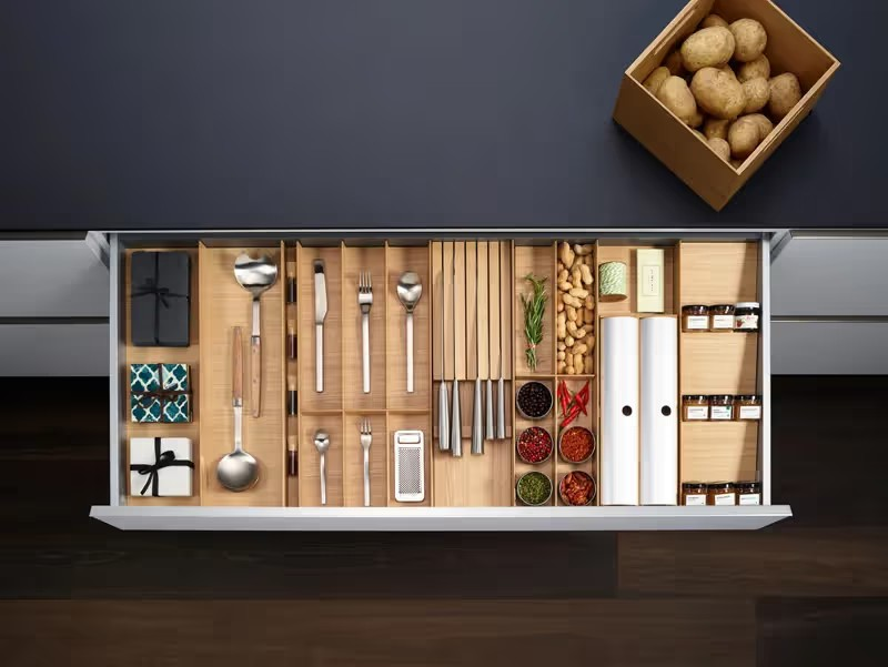 КОМПЛЕКТ лоток + делитель + держатели для фольги и для ножей, ФайнЛайн Линик 1000-1200 мм, глубина 500 мм, цвет ДУБ натуральный Kessebohmer