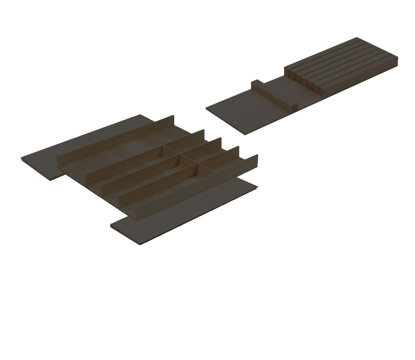 —КОМПЛЕКТ лоток + держатель для ножей, ФайнЛайн Линик 500-600 мм, глубина 500 мм, цвет ЯСЕНЬ черный Kessebohmer