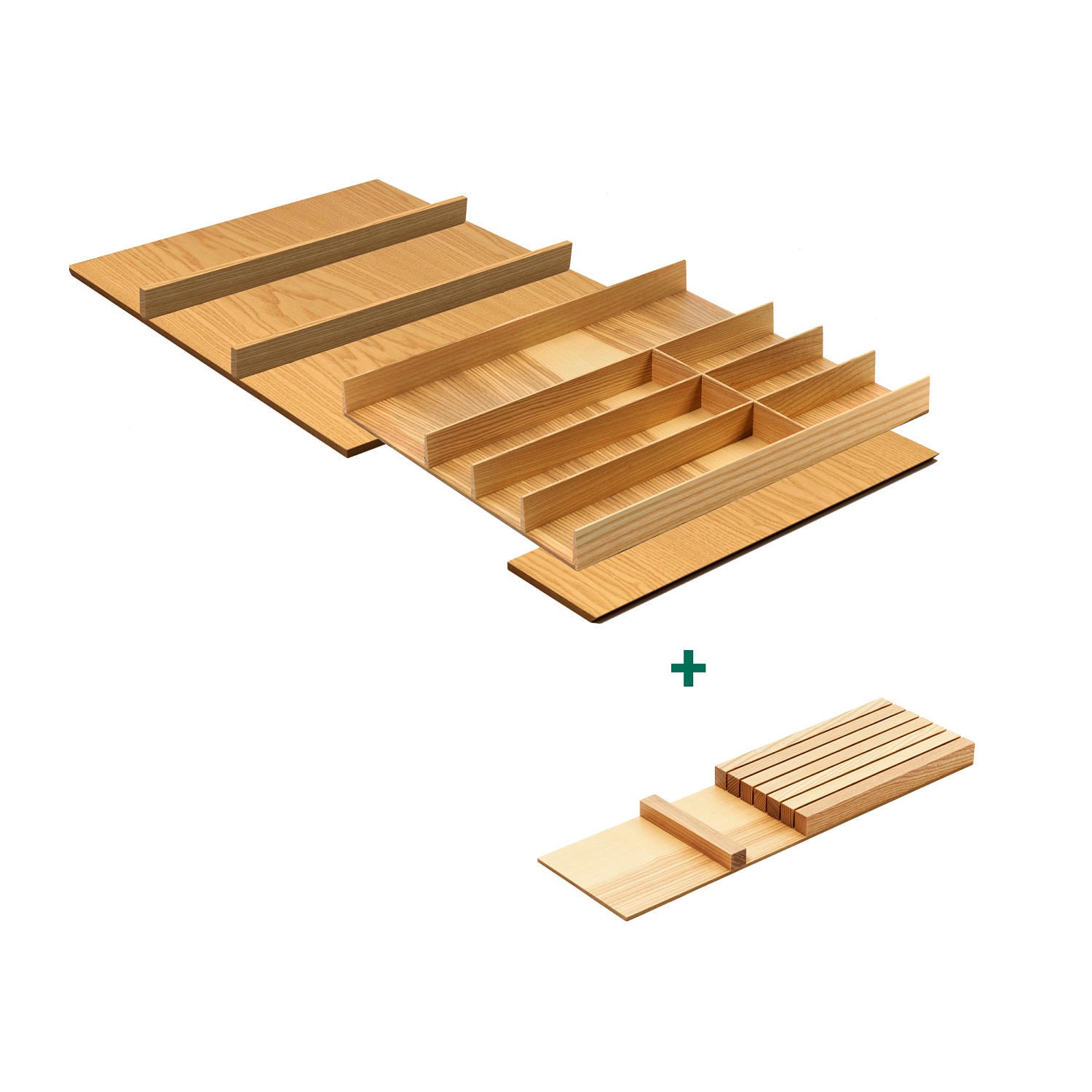 —КОМПЛЕКТ лоток + держатель для ножей, ФайнЛайн Линик 800-900 мм, глубина 500 мм, цвет ДУБ натуральный Kessebohmer