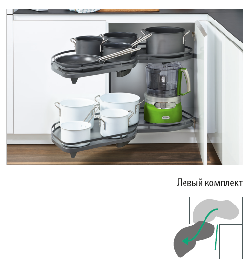 Комплект полок левый, Леманс 400 мм, Арена ПЬЮР, 2 полки + рычаги, цвет АНТРАЦИТ Kessebohmer | официальный магазин
