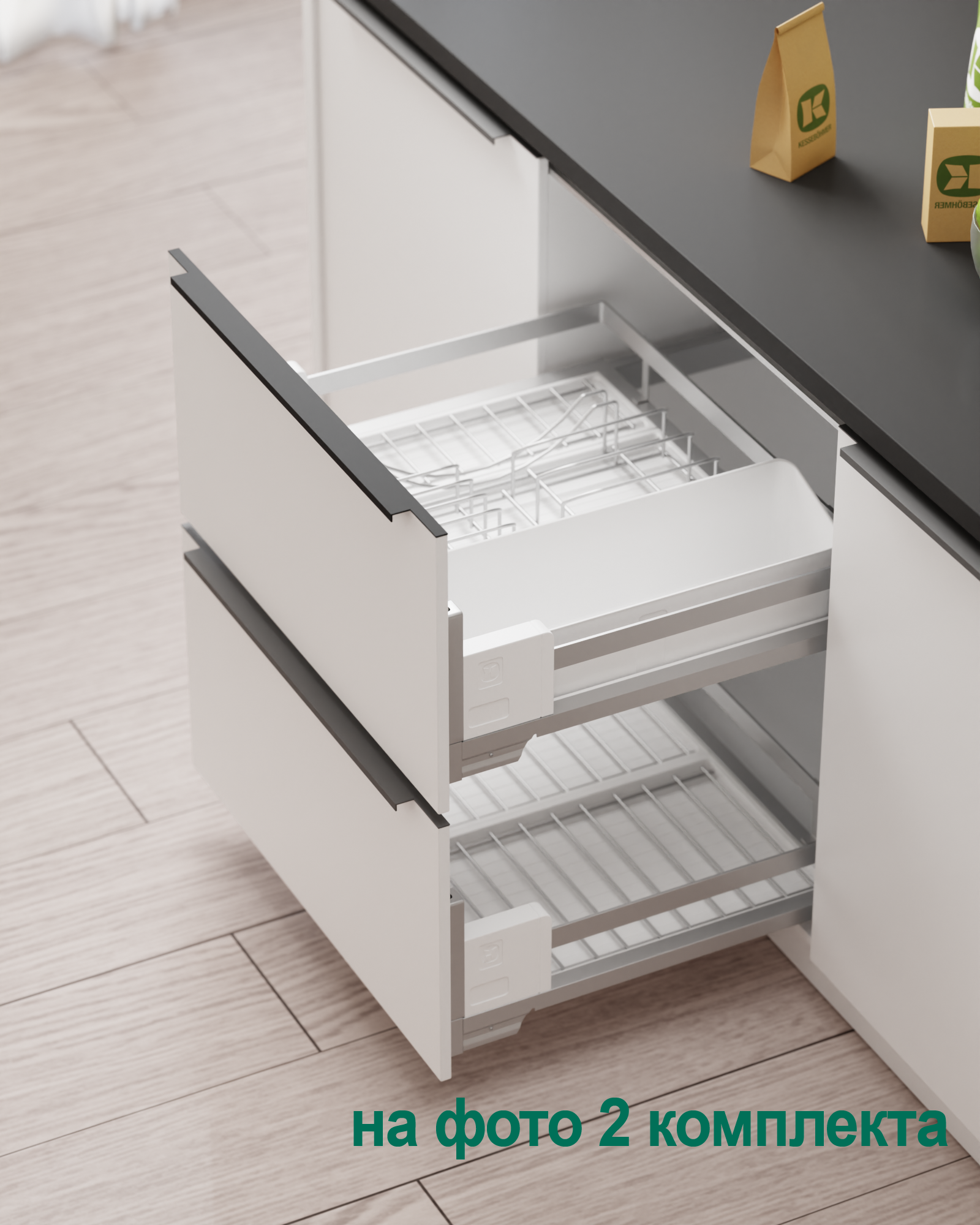 Сушка выдвижная Ф1234 Дайнинг Агент 900 мм крепление к фасаду цвет ТИТАН цвет дна Белый Kessebohmer | официальный магазин
