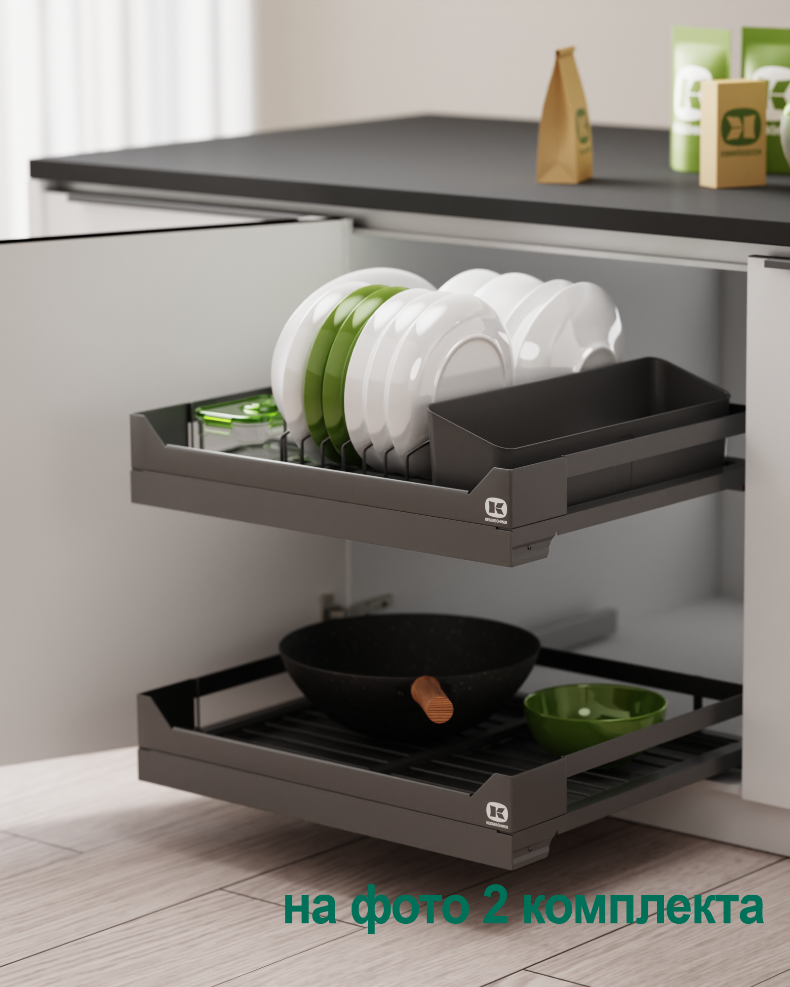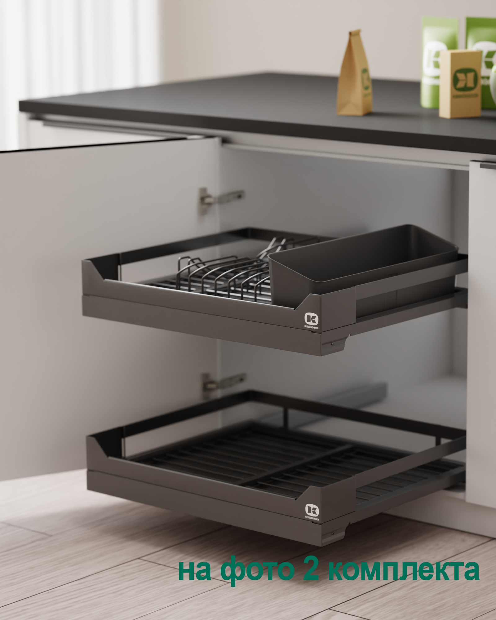 1 для посуды большой (423 x 248 мм, состоит из 1 х держатель металлический, 1 х поддон пластиковый, 2 х защелка-ограничитель)