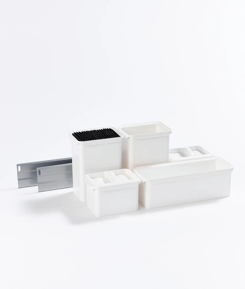Набор емкостей №1 Юбокс, Диспенса / Диспенса Джуниор 300 мм, 2х бокса 1л, 1хбокс 2, 1л., 2хбокса 2л., 2хкрышки, делитель для ножей, цвет Титан / емкости Белые (0052730102)