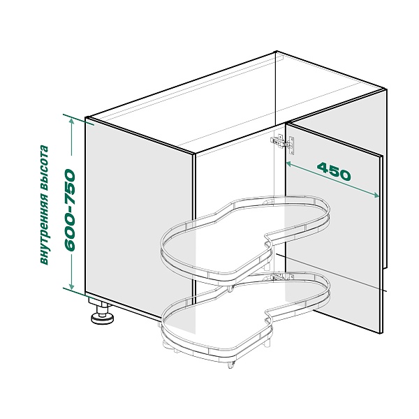 Комплект полок левый, Леманс 450 мм, Арена ПЬЮР, 2 полки + рычаги, цвет АНТРАЦИТ, цвет дна Антрацит, антислип (2603939846)