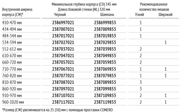 Комплект Conero: Мешок для белья 320 мм, Конеро W 484-544 мм, D 345 мм; мешок узкий 1 шт; цвет ЧЕРНЫЙ (5397017021)