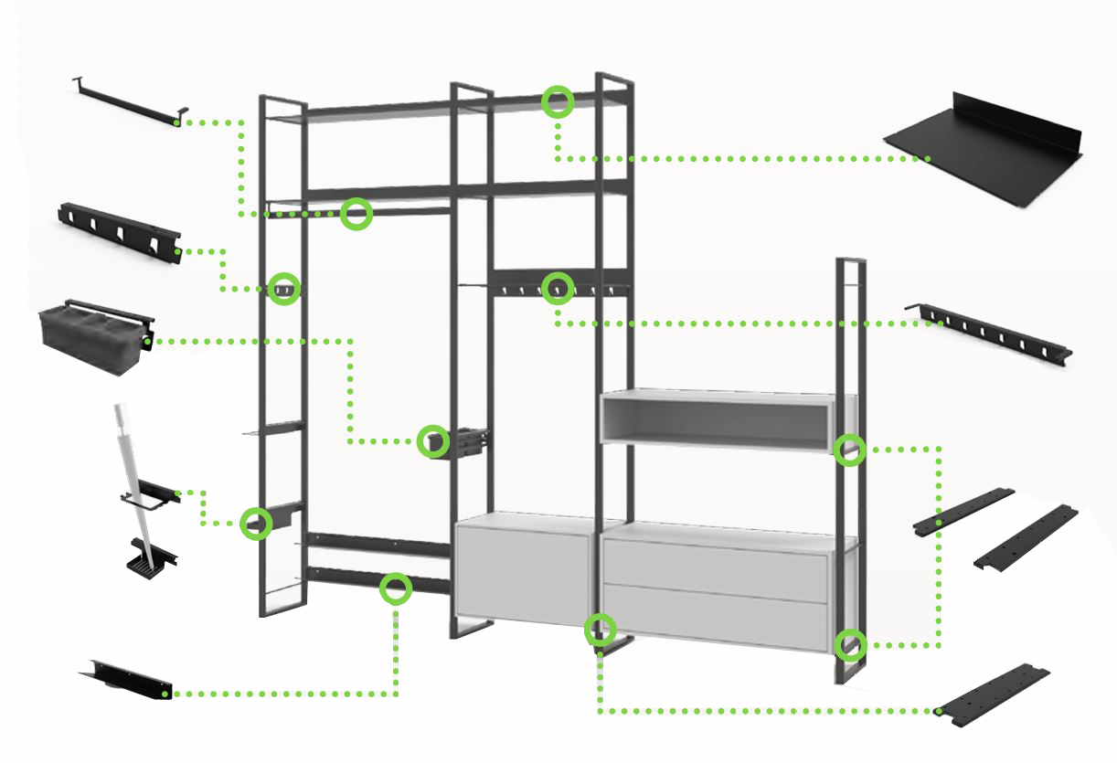 Полки, ящики в комплект не входят и изготавливаются самостоятельно.