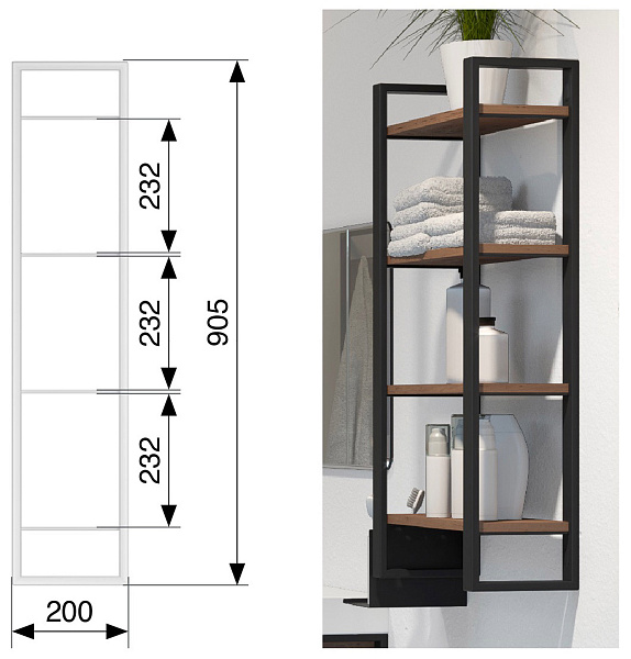YouK Рама из стального профиля для стеллажных систем 30x200x905 мм, Юкей, 1 шт, цвет ЧЕРНЫЙ