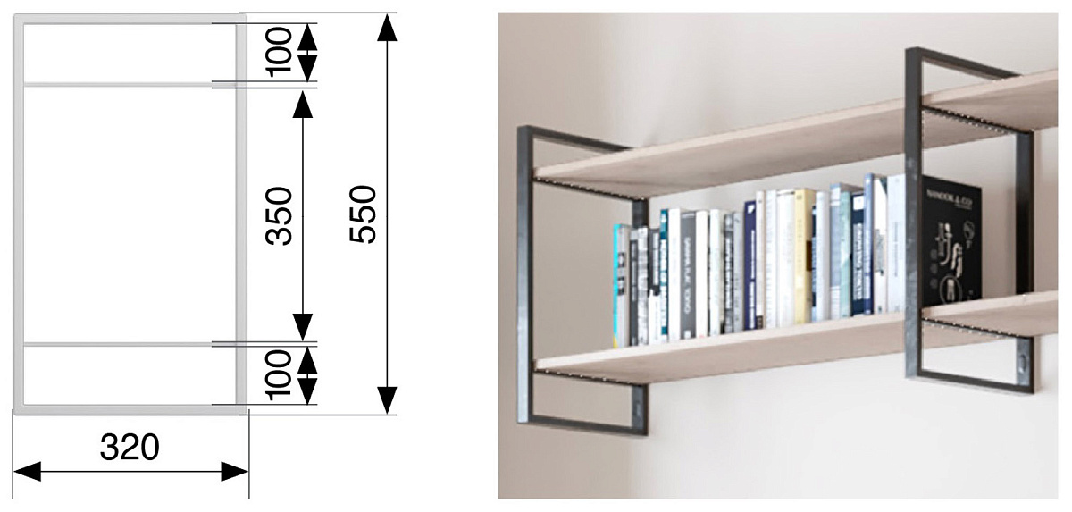 —Рама из стального профиля для стеллажных систем 30x320x550 мм, Юкей, цвет ЧЕРНЫЙ Kessebohmer