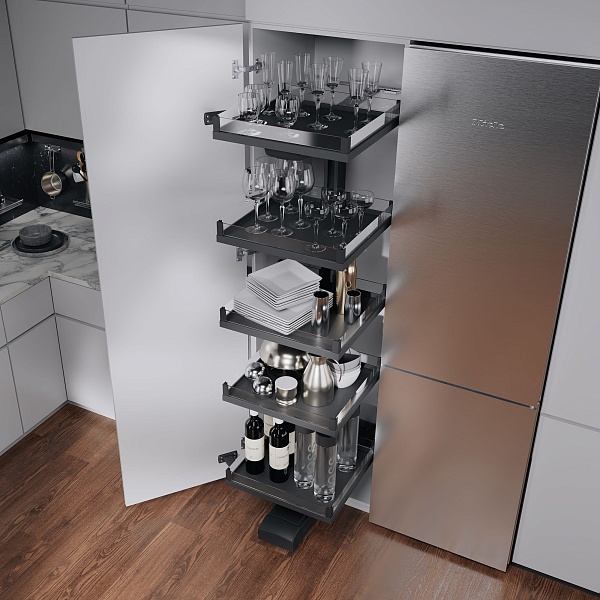 КОМПЛЕКТ левый Конвой Премио 600 мм, H 2100-2199, Арена ВАРИО, 5 полок, цвет АНТРАЦИТ Kessebohmer | официальный магазин