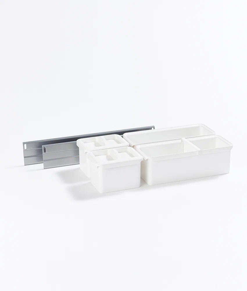 Набор емкостей №3 Юбокс, Диспенса / Диспенса Джуниор 300 мм, 2хбокса 1л., 2хбокса 2.1 л., 1хделитель, 2хкрышки, цвет Титан / емкости Белые (0052750102)