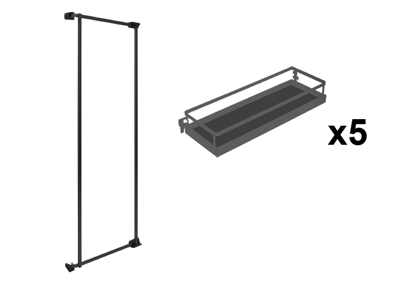 Комплект Тандем Сайд 600 мм, H 1700, Арена СТИЛЬ, Рама + 5 полок, цвет АНТРАЦИТ, цвет дна Антрацит, антислип (0036479846)