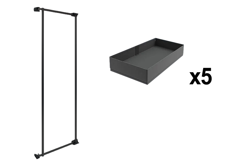 Комплект Тандем Сайд 600 мм, H 1700, Арена ПЬЮР, Рама + 5 полок, цвет АНТРАЦИТ, цвет дна Антрацит, антислип