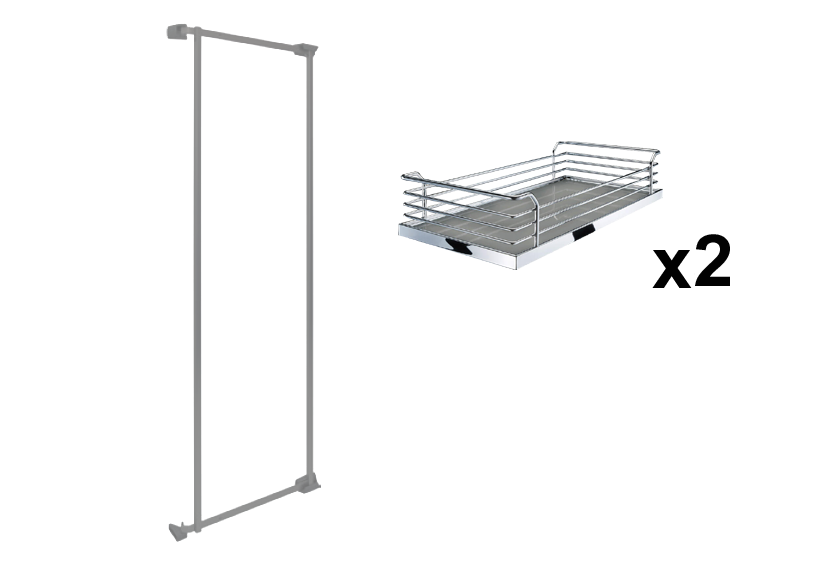Комплект Тандем Сайд 450 мм, H 600, Арена КЛАССИК, Рама + 2 полки, цвет ХРОМ, цвет дна Серый, антислип (0036840005)