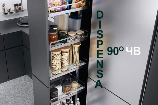Диспенса от Кессебемер – основа вертикального хранения на кухне! Это система от Кессебёмер в шкафы колонны, которая помогает организовать удобное хранение продуктов даже на малогабаритной кухне.