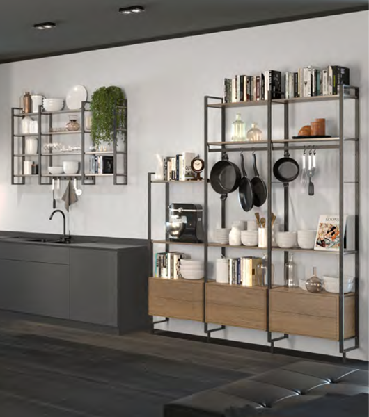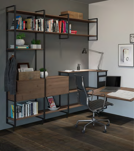 Разные размеры элементов обеспечивают больше возможностей для моделирования пространства по желанию пользователя. Юкей можно закрепить винтами к стене или установить на полу. Модули различных высот могут объединяться друг с другом. Стильный черный цвет профиля в сочетании с деревянными полками удивительно привлекателен. Полки не входят в комплект системы, поэтому их дизайн зависит только от вашей фантазии.